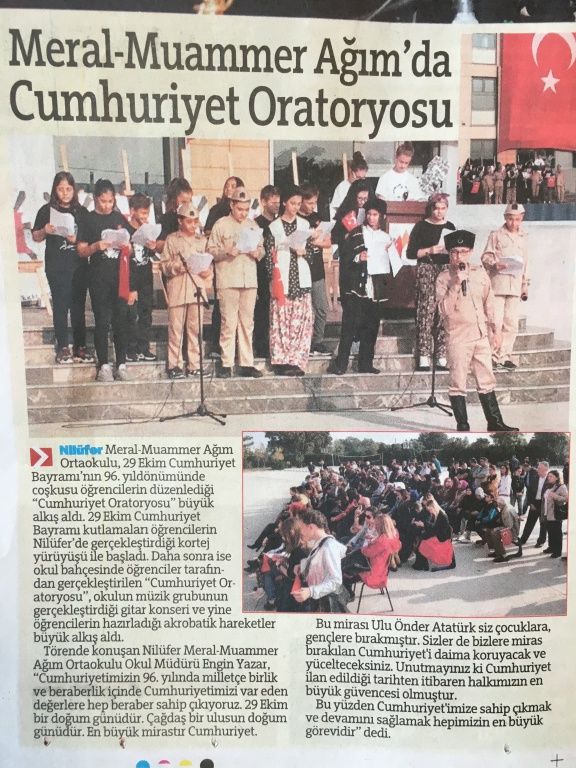 Okulumuzun Cumhuriyet Bayramı töreni Bursa Hakimiyet gazetesinde yayınlanmıştır.
